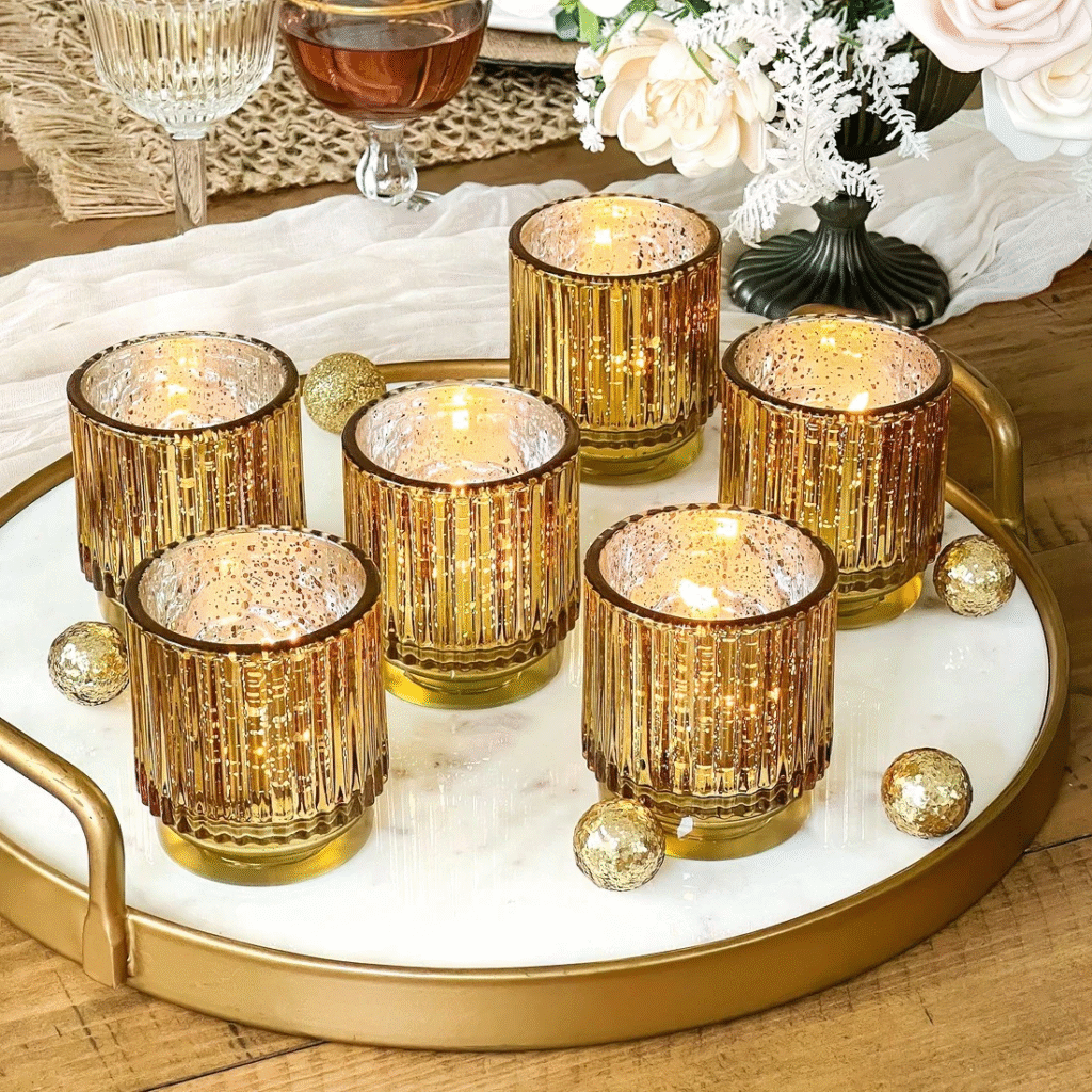 - Decorative Tealight Holders – Affordable sets in gold, emerald, or lotus pink glass for adding festive sparkle.