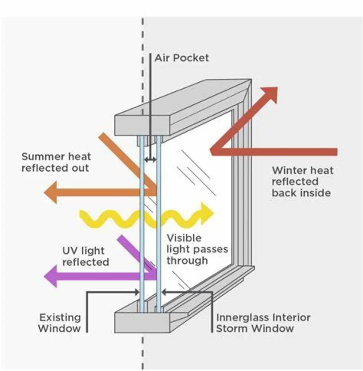 Low-E (low emissivity) coatings that bounce back heat while permitting light to pass through.